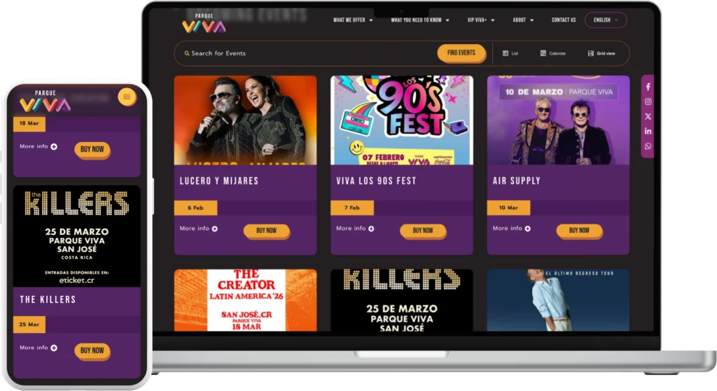 Impulsar un complejo multi-venue como Parque Viva con una navegación fluida, múltiples idiomas y mayor alcance de audiencia